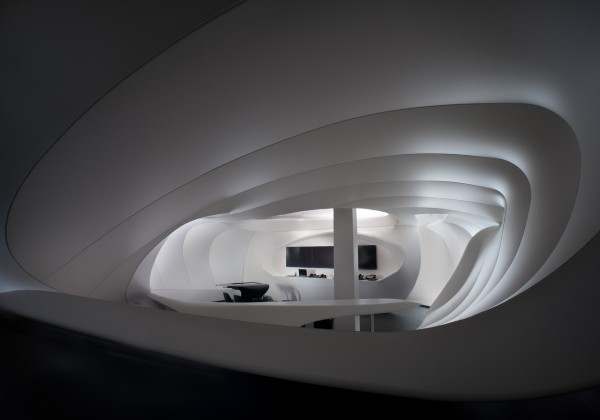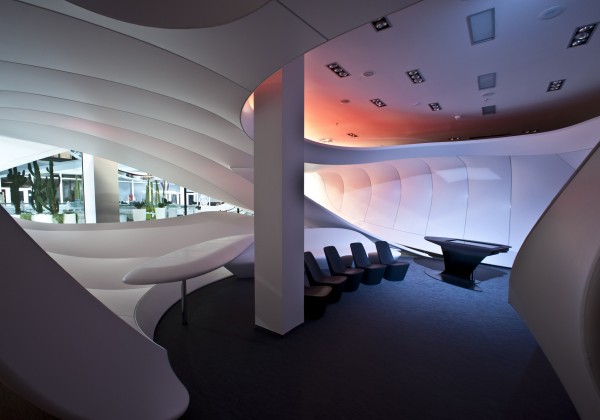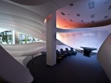 © Photographs: Alexander Doborvotský The show area has a familiar feel but yet boasts the most advanced technologies which introduced the customer to a wide offer of services and products.The audio-visual experience is supported by a truly strong and genuine interpretation of the whole area.This arrangement of space which leads into the customer’s tour firstly provides a relaxation zone from where the individual is intuitively lured pass the „organic walls“ towards the entrance welcome zone. The main part of the presentation occurs at the central – „Onenet“ object which leads from the back section via a narrow corridor and provides every customer  with a slow transition between the real world and the reality created by Vodafone. From there they continue to another two separated and differently shaped parts where the tour comes to an end.These strong and original creative solutions came  directly from the brief and feel we received from Vodafone.