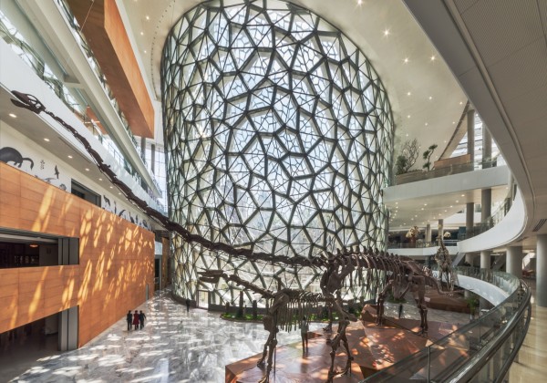 © Perkins+Will The 44,517 square meter (479,180 square foot) museum offers visitors the opportunity to explore the natural world through the display of more than 10,000 artifacts from all seven continents. The building includes exhibit spaces, a 4D theater, an outdoor exhibit garden, and a 30-meter tall atrium that welcomes visitors with an abundance of natural light filtered through a striking glass wall inspired by the cellular structure of plants and animals.Perkins+Will was selected following an international design competition that included entries from some of the world’s best known architects.