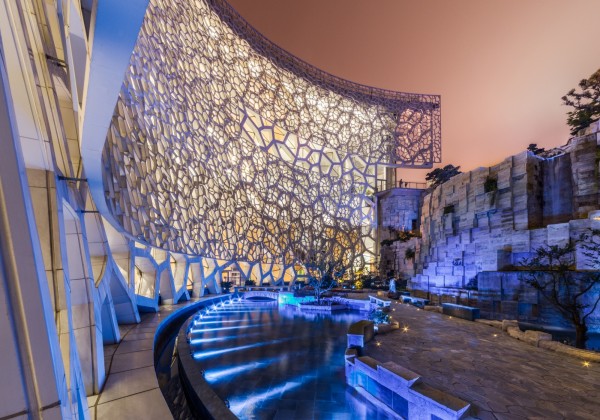© Perkins+Will The overall shape and building organization was inspired by the nautilus shell, one of the purest geometric forms found in nature. Natural elements are depicted across the building’s façades including the central cell wall representing the cellular structure of plants and animals, the east living wall signifying earth’s vegetation, and the northern stone wall suggesting shifting tectonic plates and canyon walls eroded by rivers.“The use of cultural references found in traditional Chinese gardens was key to the design,” said Johnson.