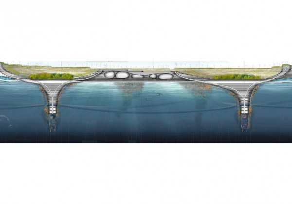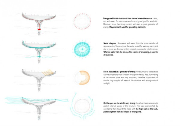 It is designed as part of a network consisting of other Arks, which connect with floating underwater tunnels and the main land.
