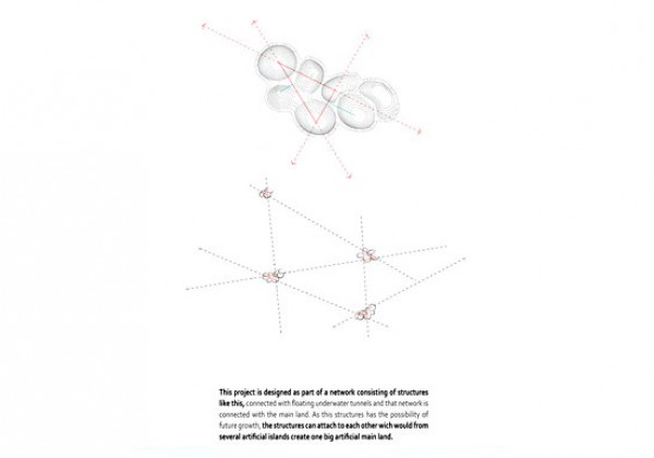 © Aleksandar Joksimovic, Jelena Nikolic As the settlements grow, the Arks can attach to each other, creating one big artificial mainland from a series of artificial islands.