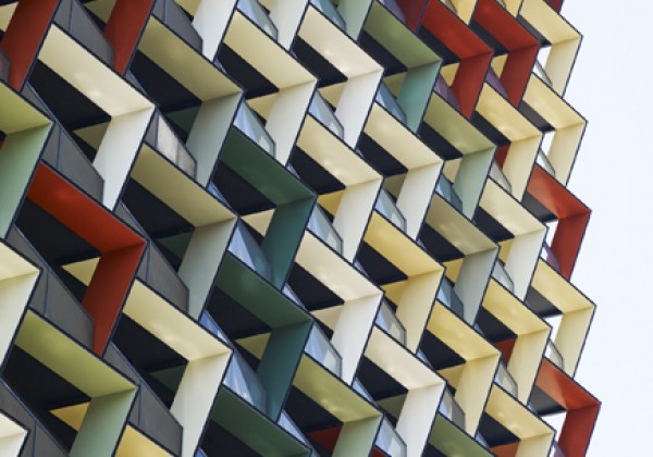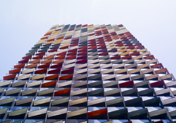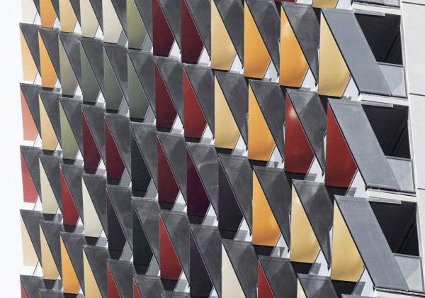 With 347 north facing sunshade louvres in 16 different colours, you could be forgiven for thinking the architects were engaging with the rich local architectural context.