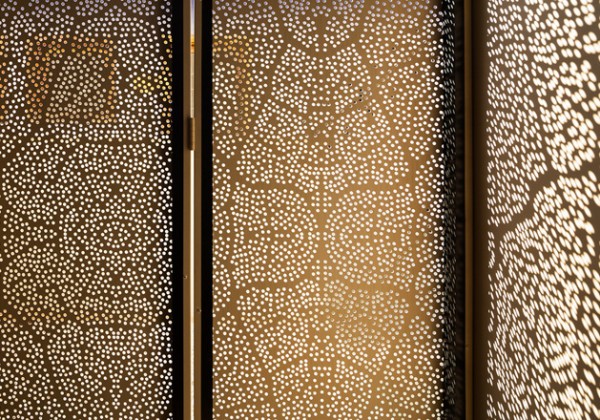 To dress the house, architects and client have chosen singular perforated metal panels, with a pattern based on the photograph of a leaf.