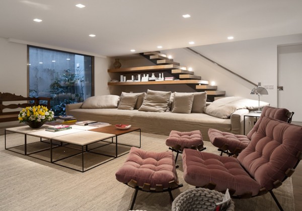 © Studio Arthur Casas The division of the space proposed is quite simple: garage, service area and home theater in the basement, kitchen, dining and living room on the ground floor and bedrooms on the first floor.