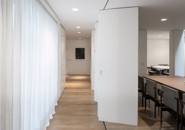 Sliding doors allow different modulations between the dining room, corridor and pantry, bringing flexibility to the house.