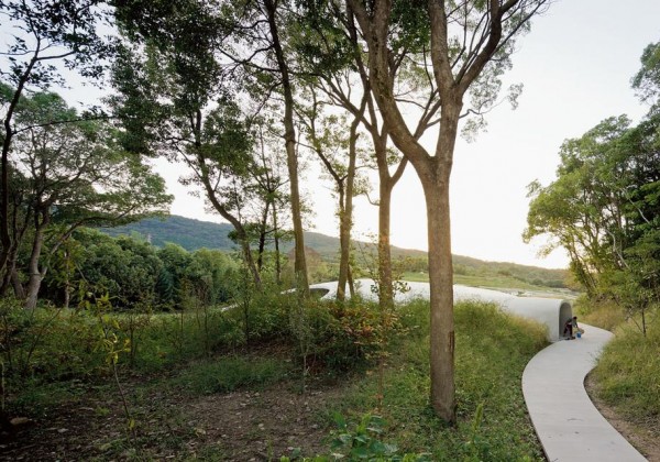 © Iwan Baan Shaped like a drop of water, the museum lies in a corner of the spacious grounds surrounded by once-fallow rice terraces that have been restored with help from local residents.