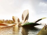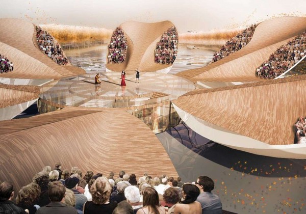 © MLBS Architects However the connection with water is not always visible. Two main petals that gradually end up in steps join together forming a deck that allows swimmers to get closer to the water. The bridge becomes a sophisticated beach, suitable for sunbathing, among other things.Culture in all its marvelous forms is an indispensable part of our lives, but there is no denying that philharmonic orchestra has become a recognizable embodiment of its essence.