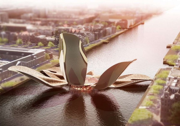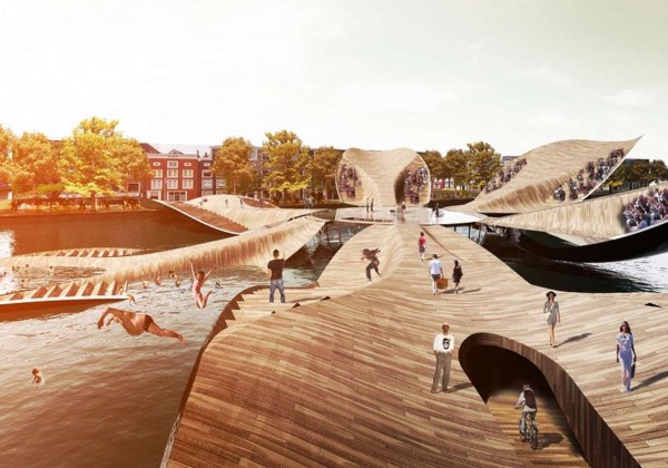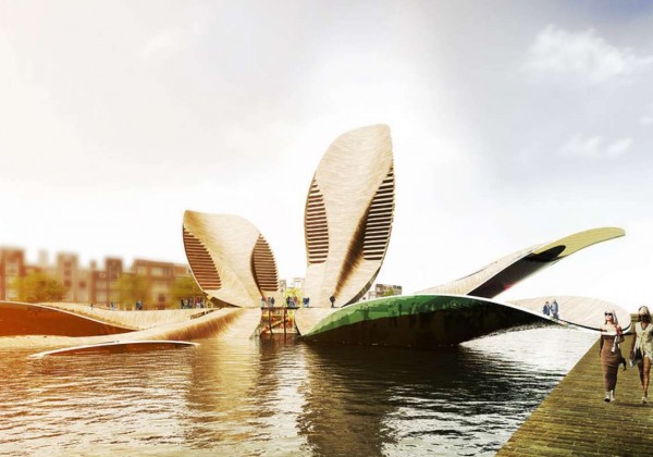 © MLBS Architects The very heart of the tulip, which becomes crescendo of pedestrian flows, is the best place to stop and enjoy the surroundings in the middle of the river channel, to feel the genuine atmosphere of the country. Here you will discover a whole new vision of the city!Dutch culture rests on water. Canals are used for skating in winter and for enjoying shade and swimming in summer. We have all seen kids plunging into canals from the Red Bridge in the Borneo neighborhood.