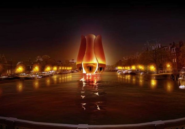 © MLBS Architects By changing itscolor at night the Tulip disguises itself in the form of city lantern contributing to creation of special atmosphere of Amsterdam. Each color marks a certain event. Thus the Tulip can change its color into orange for Queen’s day, it may be red for Valentine’s day, yellow – to celebrate the beginning of summer, black – to as a sign of national mourning, white – for national celebrations or marriages or even pink for Gay Pride. Natural colors of the tulip reflect the unique atmosphere of the city.
