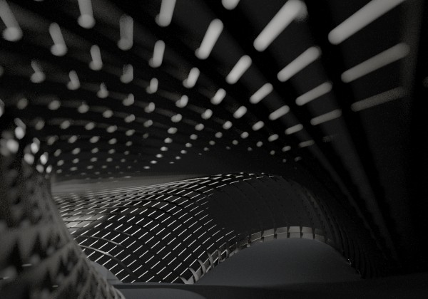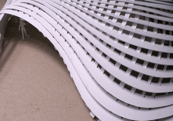 © Christoph Hermann The project´s attempt is an architectural assembly where various spatial parametric architecture configurations fluently alter to assist the existing qualities of the site (recreation area ) and the pavilions demands (exhibition space, cafe) instead of creating a conventional figure – ground composition.