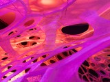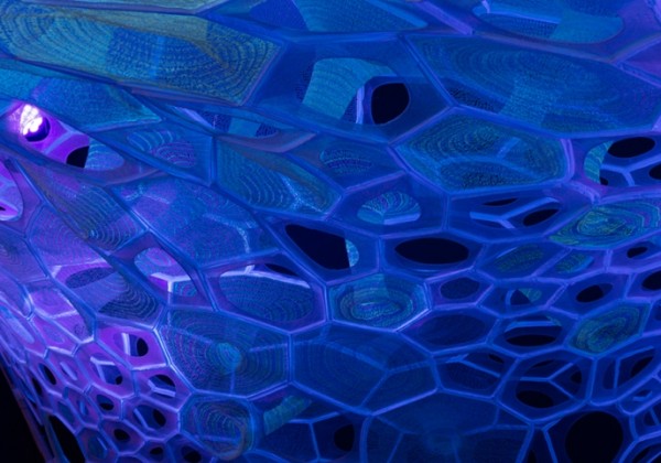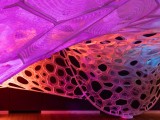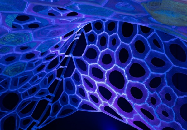 © Jenny Sabin Studio The temporary pavilion employs both photoluminescent and light activated yarns that absorb, collect, and deliver luminance.