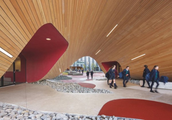 © McBride Charles Ryan The creative team at McBride Charles Ryan was commissioned by Penleigh and Essendon Grammar School (PEGS) to develop a space for 11th and 12th year students and you can see the result below: a project shaped like an infinity symbol.