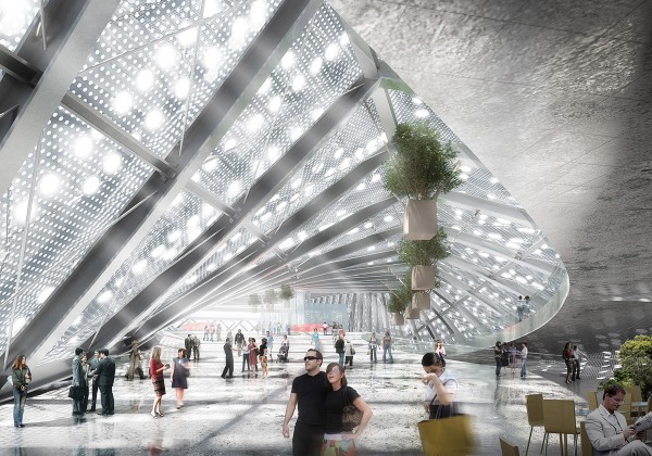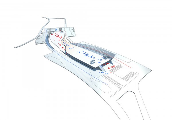 © WAU Design A low-scope path leads passengers to the arrival hall and avoid too much dependence on vertical transportation. Meanwhile, the people from different directions can have a visual intersection and get a full of abundance and enrichment image of passenger terminal building.