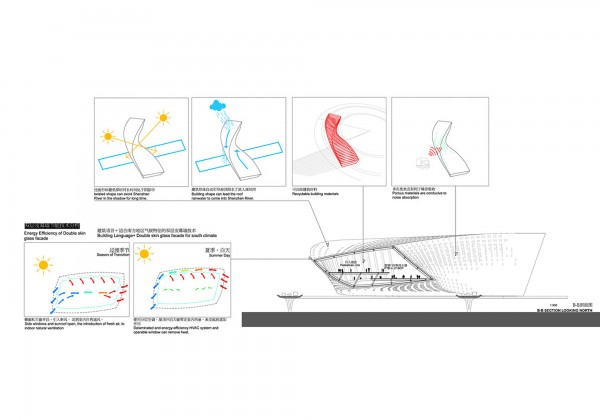 Environmental Friendliness: The middle part of building shape will be compressed to achieve the internal space need of new streamline and optimized the landscape superiority of Shenzhen river, avoid compressive feeling and a city vision separation from huge building volume.