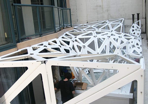 the structure of the minimal tension terrace canopy has now been completed for the apartment in the sydney CBD.Comments