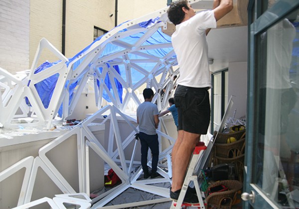 © Urban Future Organization the assembly of the framing was carried out by students at the university of sydney (USYD) that had been studying the code to production elective in which students researched design, fabrication and construction methods using algorithms within the grasshopper 3d environment.