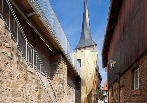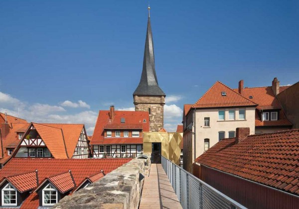 © GNÄDINGER ARCHITEKTEN A new steel bridge, a reconstructed parapet walk, makes it possible to take a walk along a part of the ancient town fortifications, it also connects the ensemble to the adjacent historic “Georgsturm”, build onto the town wall in the eighteen century..