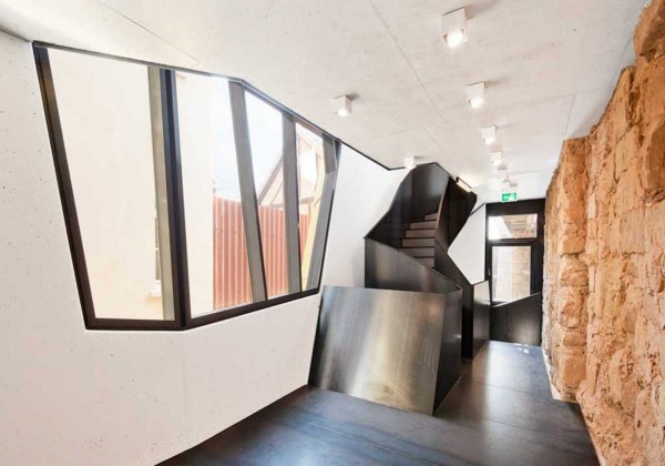 © Markus HattwigThe addition, mainly houses the emergency staircases, as well as a gallery with a void in front of a big window. In keeping with the shape of the new building, the three storey open staircases are also sculptural in design and form.