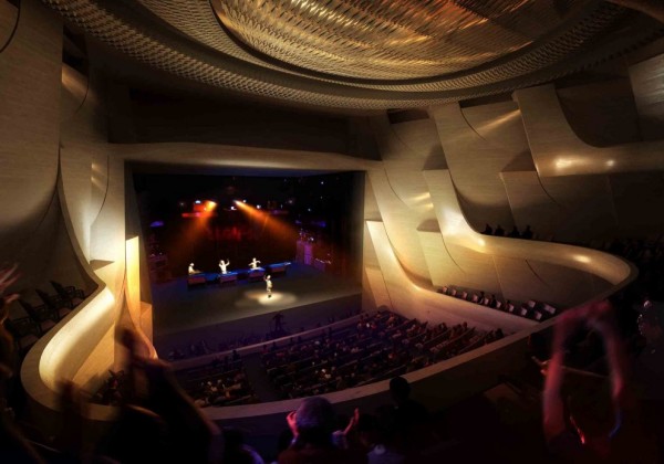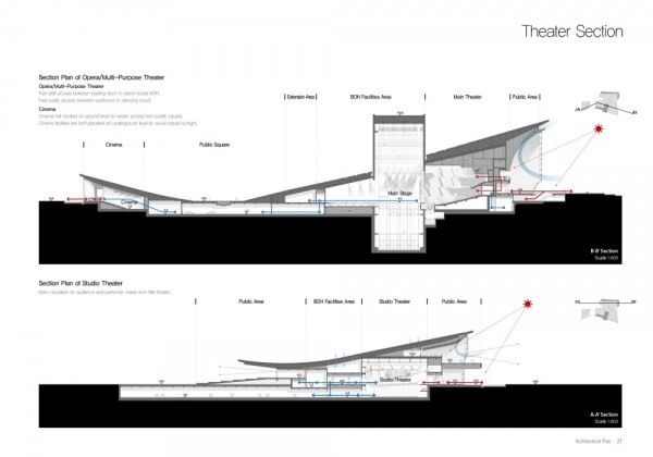 © DMP PartnersThe building is designed for various performing arts such as musical, ballet, dancing and etc. The grand hall and two theaters are facing to the central park and there is open space of magnificent energy people can feel.